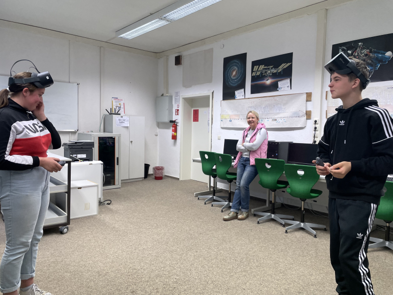 Zwei Neuntklässler hatten heute die tolle Gelegenheit, einen Blick in die Zukunft zu werfen und VR-Brillen zur Berufsorientierung zu testen.